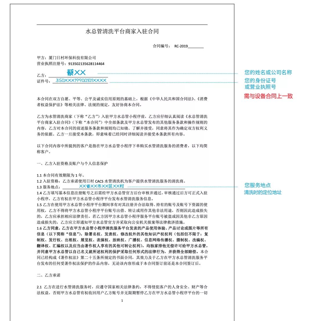 步驟一:師傅聯(lián)系業(yè)務(wù)員,業(yè)務(wù)員指導(dǎo)下載入駐合同。(注意:入駐要求**已購買日村設(shè)備的師傅,所以入駐合同信息請與購買設(shè)備合同上的信息一致,否則不予通過。)