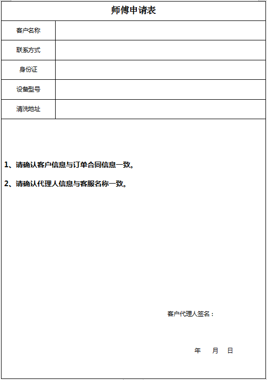 步驟三:由銷售員填寫師傅入駐申請表給予公司審核。審核通過后寄出入駐合同。
