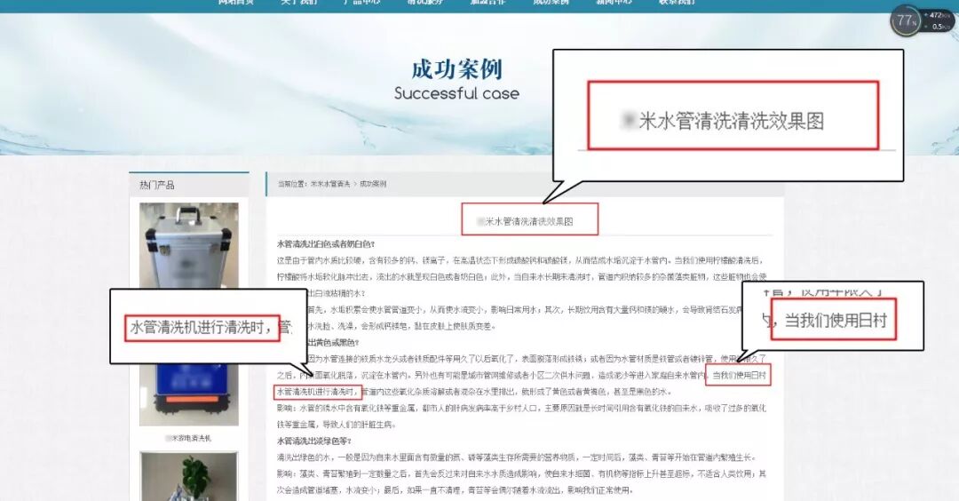 文章內(nèi)還多次出現(xiàn)“日村水管清洗機(jī)”
