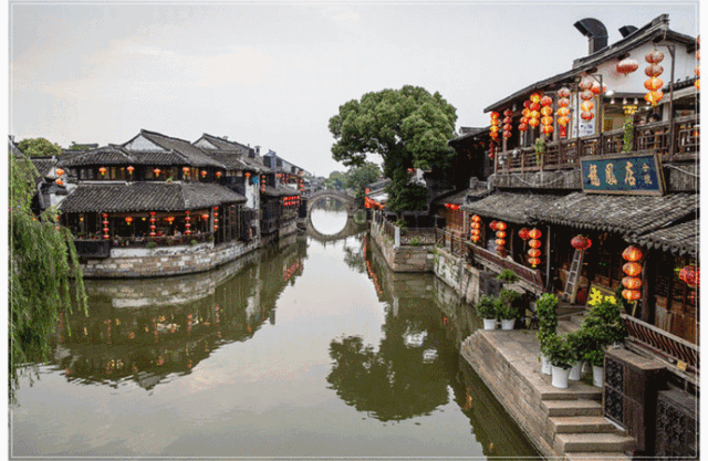 -西 鎮(zhèn)-遠(yuǎn)眺水鄉(xiāng),白墻墨頂,舟影波光,在薄霧的暈染下恰如一幅淡彩的宣紙畫。