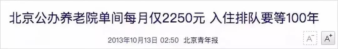 北京一家公辦養(yǎng)老院,價廉物美,單間只要2250元一個月,雙人間每人只要1200元,但入住卻要排隊(duì)等100年。