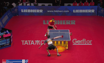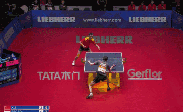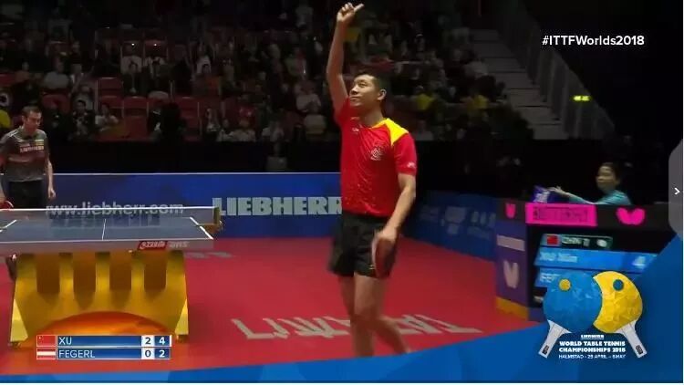 當(dāng)時(shí),許昕發(fā)球,費(fèi)格爾接球,