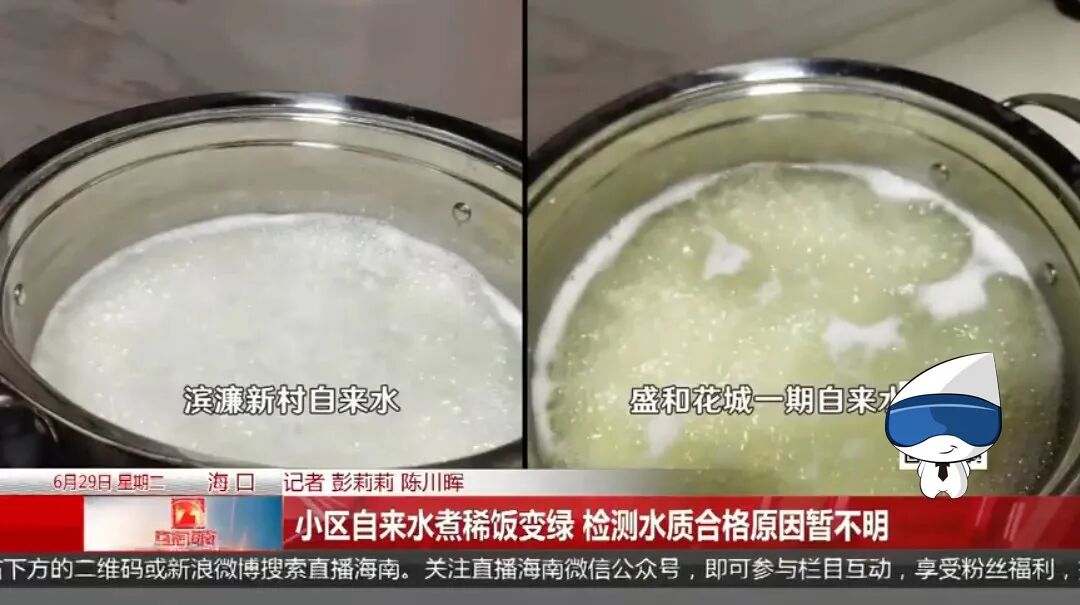 “用小區(qū)的自來水煮稀飯,煮熟后發(fā)現(xiàn)稀飯竟然變綠了?!?/p>