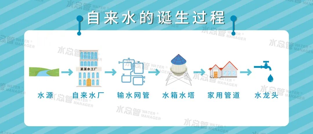 消毒后的自來(lái)水要經(jīng)過(guò)漫長(zhǎng)又復(fù)雜的運(yùn)輸過(guò)程才能到用戶家中,從 自來(lái)水廠→ 輸水網(wǎng)管→水箱水塔→家用管道→水龍頭 ,這些輸送環(huán)節(jié)只要出現(xiàn)污染,都會(huì)對(duì)水質(zhì)產(chǎn)生影響。