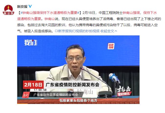 鐘南山的看法是,新冠病毒并不是因?yàn)橄莱赃M(jìn)去感染,而是糞便等污染物滯留在下水道,干了以后里面的病毒,帶到空氣中被人吸入,就產(chǎn)生了感染的風(fēng)險(xiǎn),這應(yīng)該是最合理的解釋。