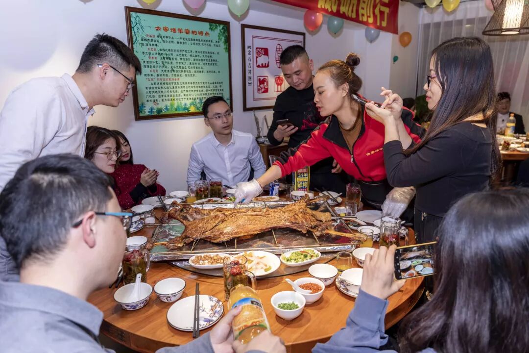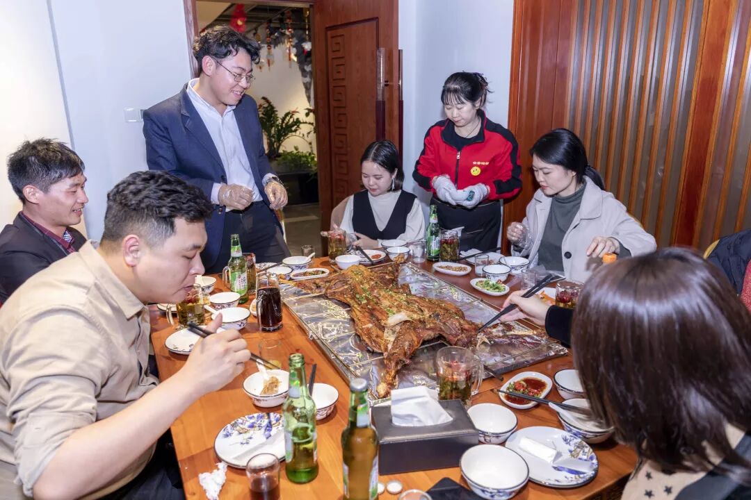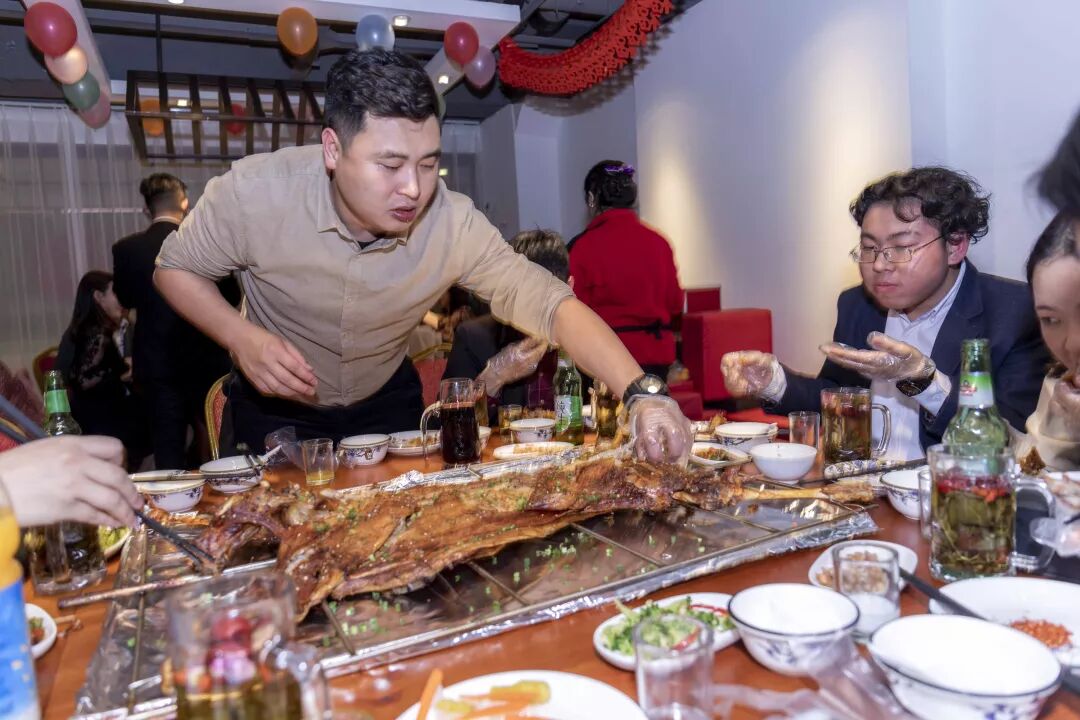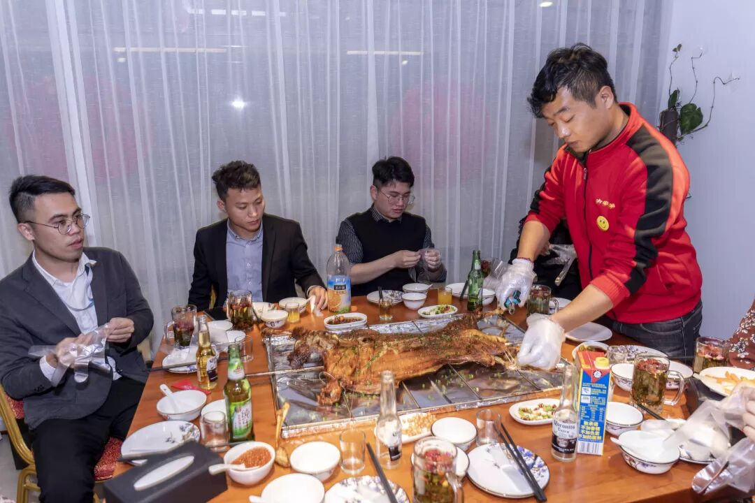 辛苦了一天,看著這烤全羊,大家都躍躍欲試,準備敞開肚皮吃一頓。