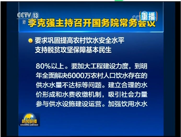 李克強(qiáng)總理主持召開國務(wù)院常務(wù)會議:要求鞏固提高農(nóng)村飲水安全水平