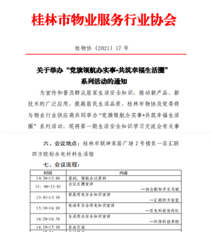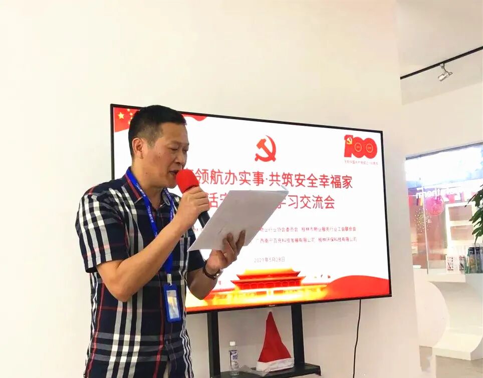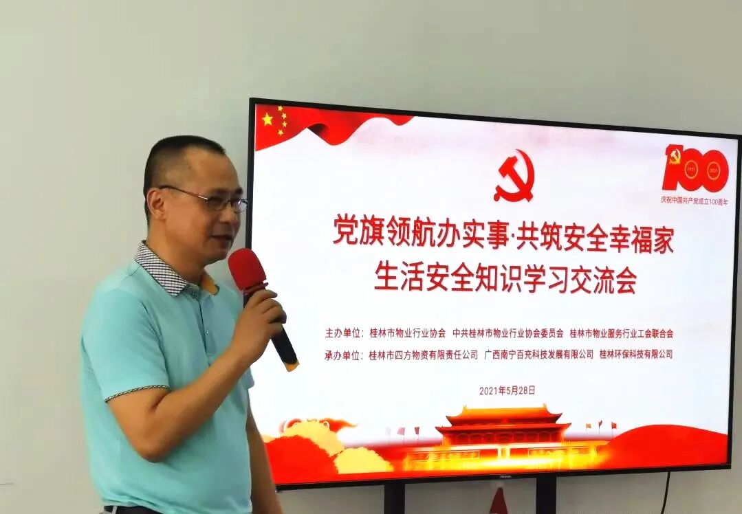 5月28日,李總參加了由桂林市物業(yè)行業(yè)協(xié)會、中共桂林市物業(yè)行業(yè)協(xié)會委員會、桂林市物業(yè)服務(wù)行業(yè)工會聯(lián)合會共同舉辦的“黨旗領(lǐng)航?構(gòu)建和諧”生活安全研討交流會。