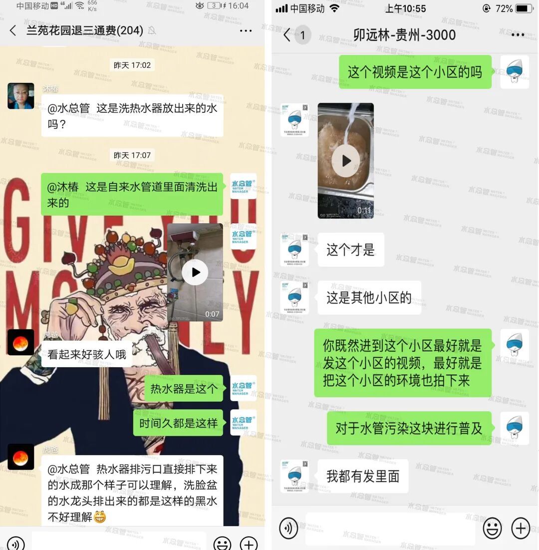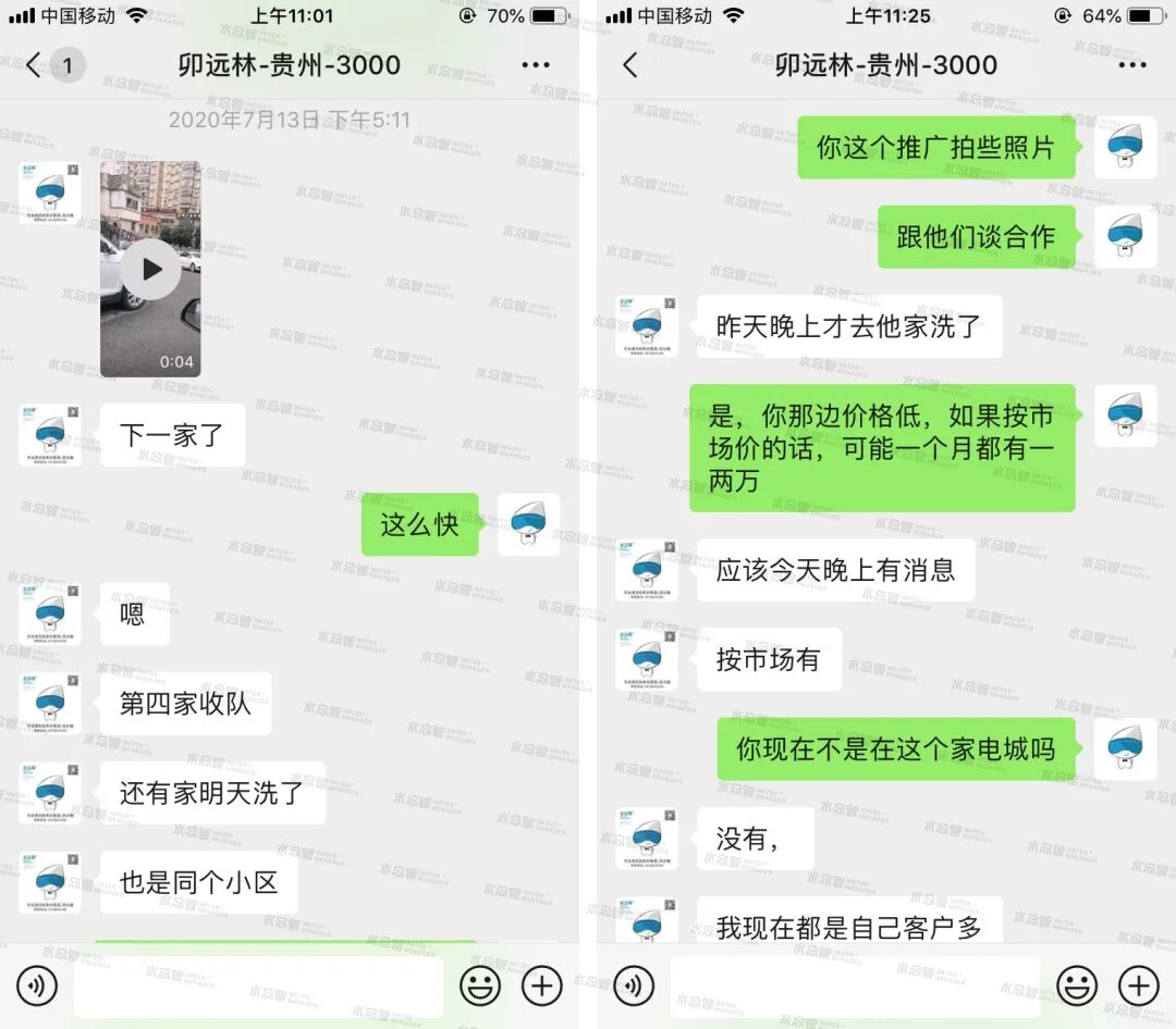 在做業(yè)主群推廣的時候,卯師傅把清洗案例和效果視頻發(fā)到群里給大家看,明顯的臟水清洗效果,讓不少人大吃一驚。